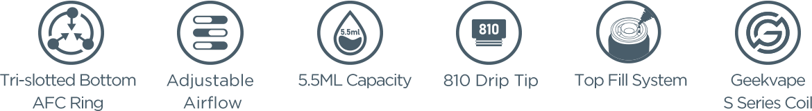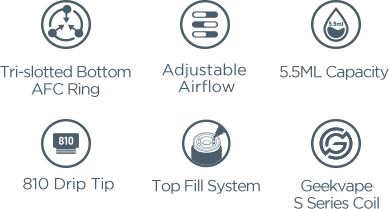 Obelisk C Tank – the incredible Cerberus Subohm Tank returns to the market with impressive features. This well-designed 25mm base diameter tank updates its adjustable bottom AFC ring from dual-slotted to tri-slotted. Fill up 4ml or 5.5ml of your favorite liquid with innovative threaded top fill system. Create massive clouds and flavor with new Geekvape S Series Coil (Super Mesh Coil). Enjoy a triple-boosting vaping experience!