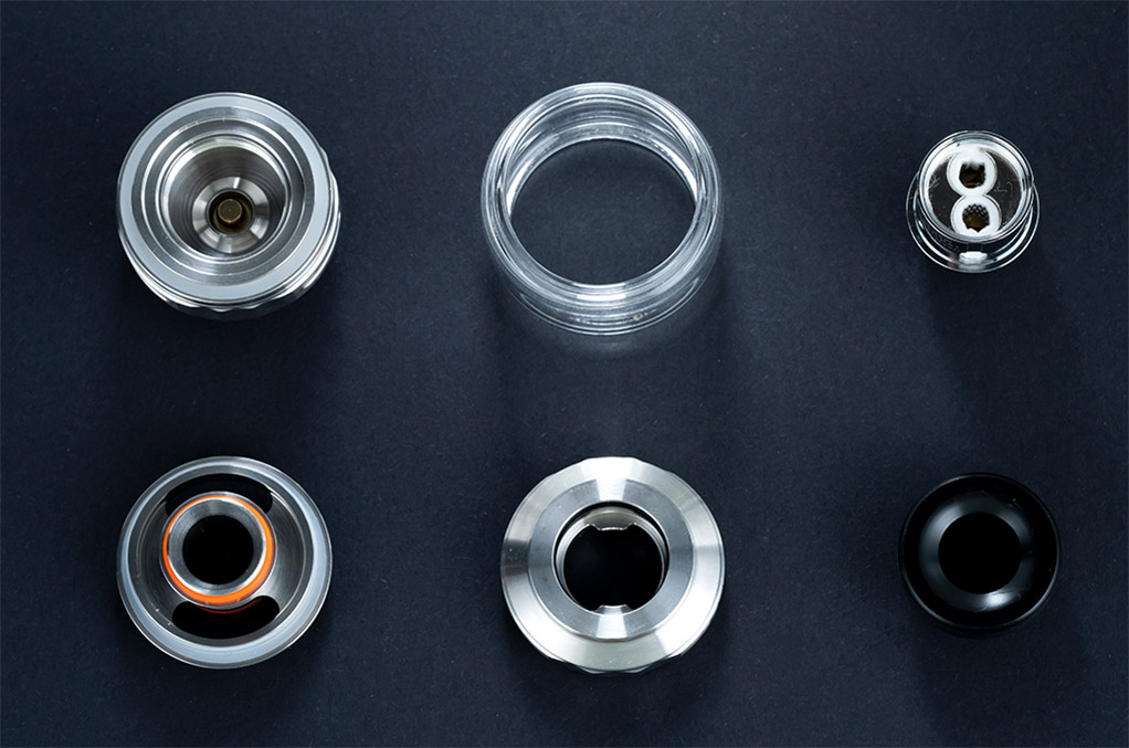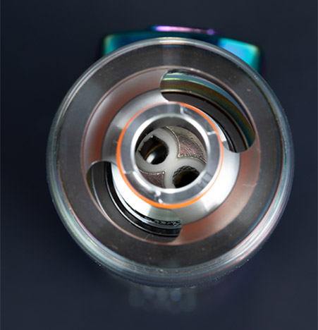 Obelisk C Tank has an adjustable tri-slotted bottom airflow ring to control the inflow of air to create conditions conducive to thicker vapor or richer flavor production.