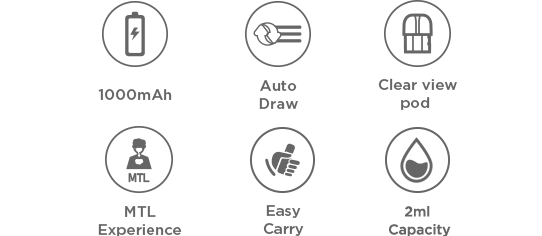 | Features | 1000mAh Auto Draw Clear View Pod MTL Experience Easy Carry |